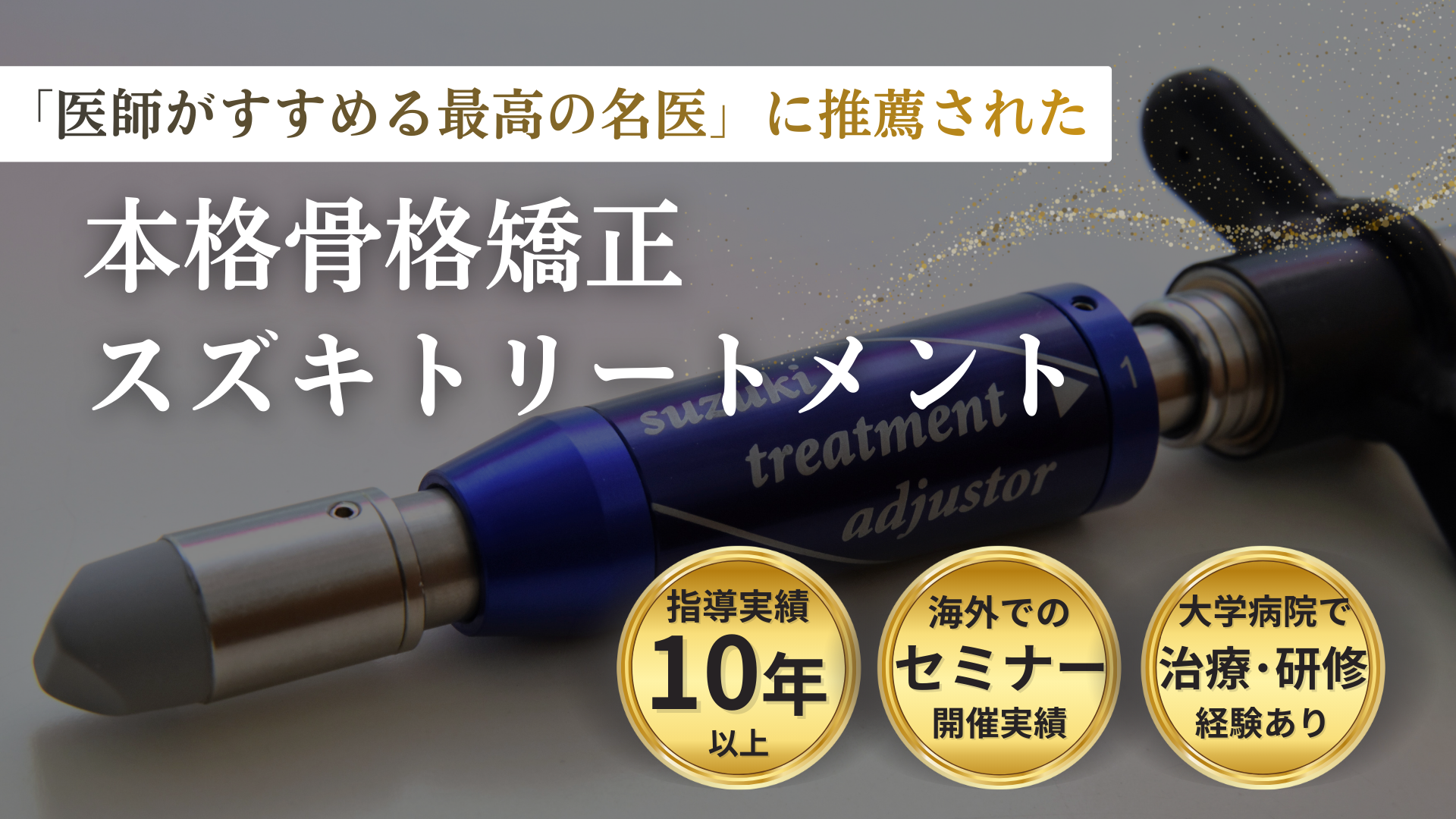 スズキトリートメントは、ピンポイントで骨を強制できるため、今までの筋肉へのアプローチだけでなく、より総合的な治療が可能になりました。理論がしっかりしているので、患者さんへの説明も説得力があり、ほとんどの方にリピートしていただいています。